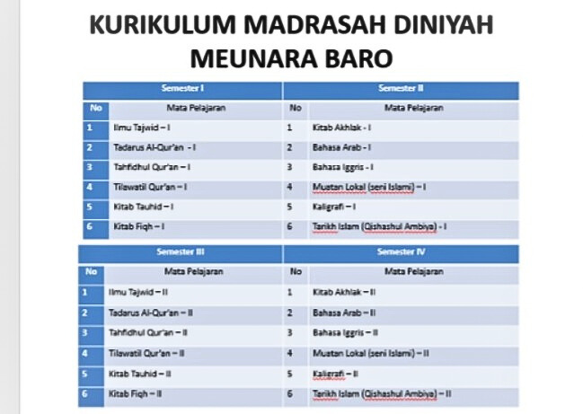 Kurikulum Madrasah Diniyah Yayasan An-Nur Meunara Baro disusun secara terstruktur, berjenjang, dan berkesinambungan untuk mendukung proses pembelajaran keislaman yang efektif dan berkelanjutan bagi para santri.